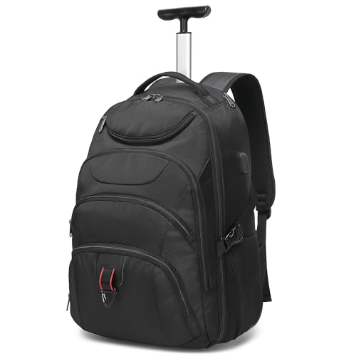 DURABLE MATERIAL: This rolling backpack is made of premium waterproof Oxford fabric that may be both attractive and sturdy, with two-way YKK zippers. And there’s a height-adjustable smooth aluminum hidden retractable take care of with two sturdy, wear-resistant and silent rubber rollers for easy use on different surfaces. Equipped with an adjustable padded shoulder strap and with no mobile power USB, it brings convenience to your traveling