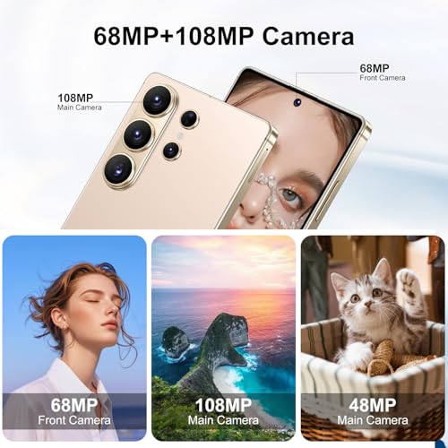 【108MP+68MP Camera & 12Core Processor】Snapdragon8 Gen3 12 Core CPU with 16GB+512GB 108MP main camera, paired with enhanced image processing algorithms, makes every photo exceptionally sharp and detailed, whilst still striking and lifelike. The cell phone is equipped with the powerful 12 CPU Core processor, which can dramatically reinforce the running speed, network, frame rate and picture smoothness, you’ll no more wish to suffer from phone lag.