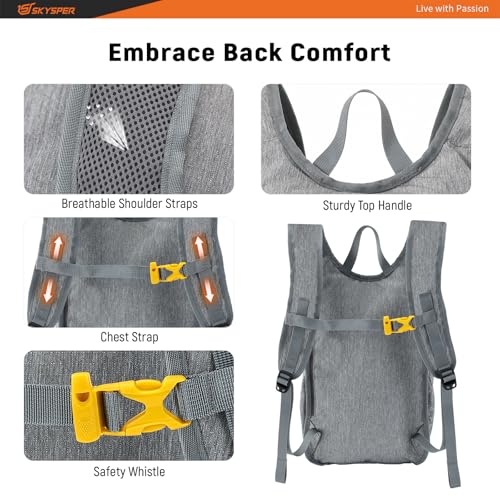 Enhanced Comfort with Upgraded Chest Strap: Designed for leisurely hiking, this hiking daypack prioritizes comfort with an added chest strap equipped with a safety whistle. This feature alleviates strain all through trip, ensuring stability and reducing the burden on your shoulders