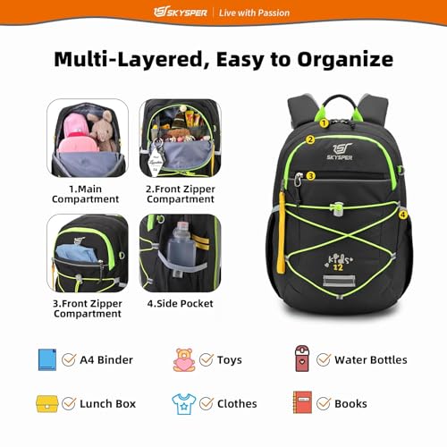 LARGE CAPACITY AND MULTI-POCKET: The children’s hiking backpack has a capacity of 12L, which is enough to hold daily necessities such as clothes, water bottles, and children’s cameras. Along with the main storage space, the day backpack is also equipped with multiple pockets, including two zipper pockets and two mesh pockets, which make it easy for children to classify and store items, improving trip efficiency