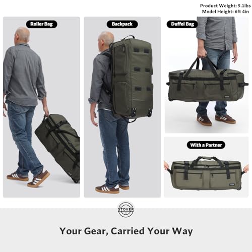 YOUR GEAR, CARRIED YOUR WAY: With a couple of carrying options this rolling duffle bag is perfect for any terrain. Utilize the heavy-duty wheels for pulling the bag like rolling luggage, the ergonomic & comfortable shoulder straps to wear as a backpack, or the top or side carry handles to carry as a duffel bag.