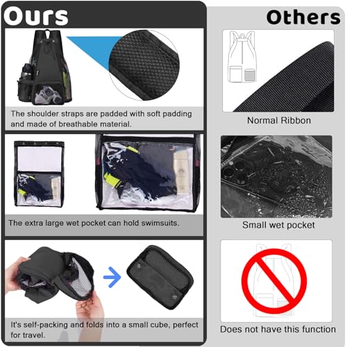 Large Capacity with Wet/Dry Separation: Features a spacious interior with a built-in waterproof compartment for storing wet clothes, keeping them separate from dry items.