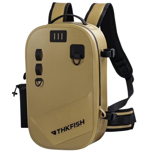 Waterproof Fishing Tackle Bag: Made of 840D oxford fabric and double-sided waterproof TPU coating, THKFISH waterproof fishing backpack is durability and waterproof. With its high-density construction, this fishing tackle bag not only ensures a formidable defense against water intrusion but also guarantees long-lasting performance in the face of rugged fishing environments. Perfect for fly fishing, kayaking, boating and other outdoor activities.