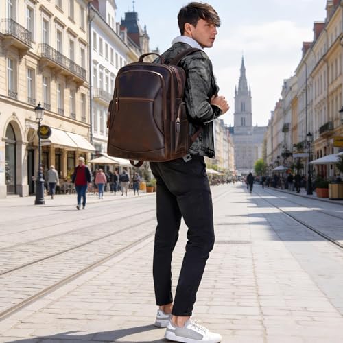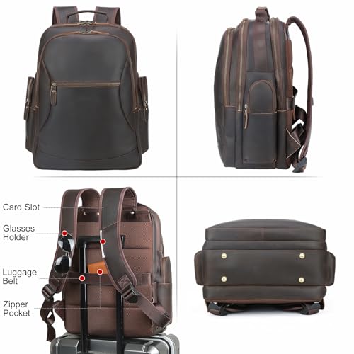 【Multipurpose】: This large genuine leather backpack can meet your more than a few needs of trip and camping, and can also be used as an daily backpack or a work backpack. Enough space to store your clothes, toiletries, laptop, tablet, cellphone, A4 files, charge, power bank, cables, wallet, camera, umbrella, water bottle, etc.