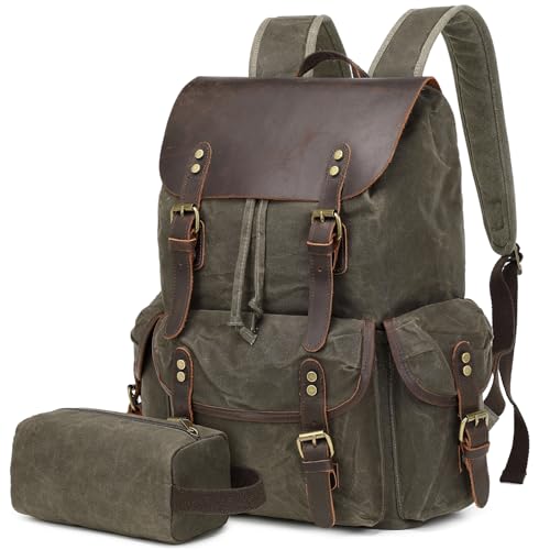 【Wide Application Canvas Backpack】Leather-Waxed Canvas Backpack can be utilized as a daypack, international Trip backpacks, out of doors backpacks, hilking backpacks, bushcraft backpack, computer leather backpacks. (Please note that this product uses special technology and the material is hard, but it’ll turn out to be soft after use for a time period.)
