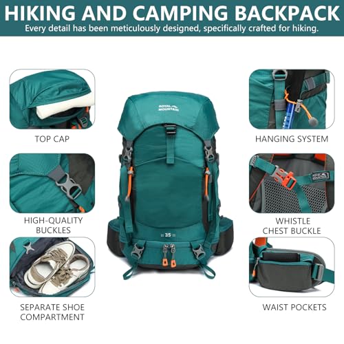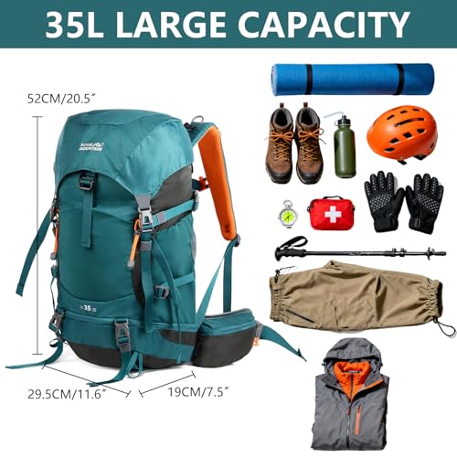 【35L Ideal Capacity & Organized Storage】 35L capacity is perfect for 1-2 day hikes, weekend camping or short go back and forth (not too bulky for daily carrying), easily holding a 15.6-inch laptop, 2L water bottle, change of clothes and toiletries.