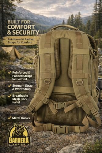 🔹 MOLLE EXPANSION SYSTEM FULL MOLLE WEBBING SYSTEM: Expand your loadout with additional pouches and tactical accessories. Ideal for customization as a military rucksack, hunting pack or survival backpack.