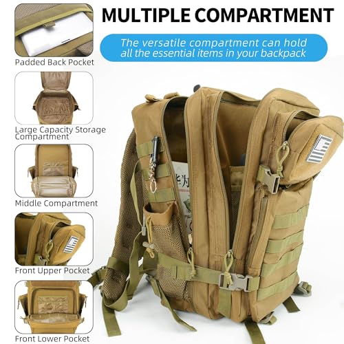 ✅ [Practical and Covient]: The quick-release chest and waist straps protected your mountaineering backpack easily for stability. Additional side and bottom compression straps give a boost to stability all the way through motion. This heavy-duty bug out bag can be utilized as a 3 day assult pack, hunting backpack, military survival backpack, or hiking backpack. It also serves as a daily use utility bag.