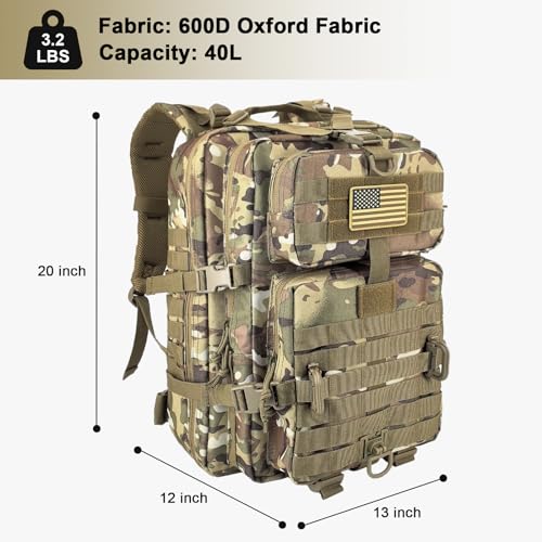LARGE CAPACITY – Military tactical backpack size approx.:12″*20″*13″ / 30*50*33CM (W*H*D) Capacity:40L, This tactical military assault backpack is made of quality and water-resistant High Density fabric, With Large Capacity assist you to carry all of your tactical gears, it may be used as 3 day assault pack, bug out bag backpack, emergency backpack, combat backpack, range bag, molle emt backpack, EDC outdoor backpack, hunting backpack, commute backpack, survival backpack or trekking backpack