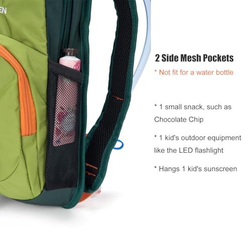 Perfect for kids of 3 to 12 years old: Loads of storage pockets and 2 mini sides mesh pockets can hang sunglasses or other small out of doors equipment.The backpack dimension: 15.0 inch x 7.8 inch x 4.5 inch. Capacity: 8L