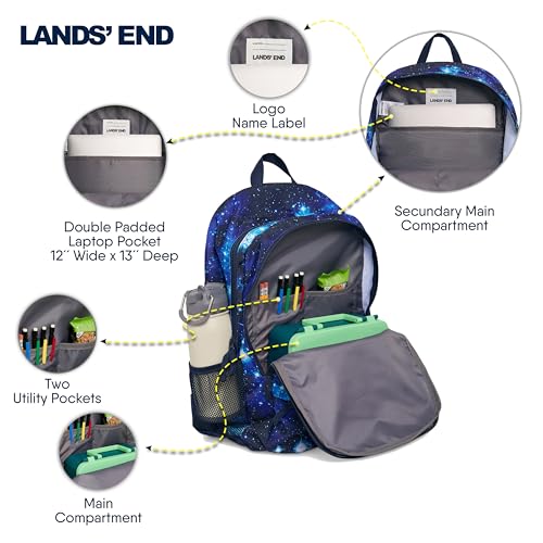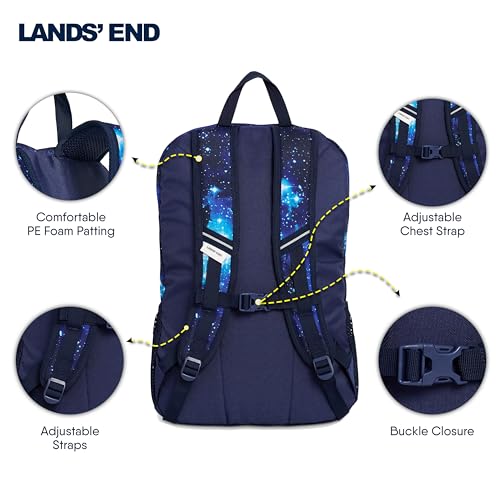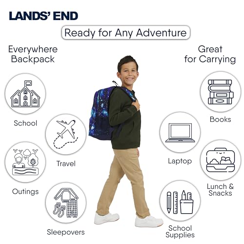 Since 1963, Lands’ End has been a trusted name for classic American style, with a brand legacy built on quality and lasting durability. This backpack embodies that unwavering commitment by being the ultimate companion for your child’s busy life. Perfectly sized for school, camping, shuttle, outings, playdates, and sleepovers, its spacious interior easily holds the entire essentials. From school supplies and a lunch box to gym clothes, snacks, and toys, this backpack is able for any adventure. This backpack is built for lasting performance, weighing just 15.2 ounces and made from a sturdy, high-quality reinforced nylon fabric. For a protected and comfortable fit, it features adjustable shoulder straps with PE foam padding and an adjustable chest strap with buckle closure. A reinforced top care for doubles as a convenient hand grip and wall hanger, even as high-quality zippers provide easy access to the two-way zippered main compartment, a front pocket, and two mesh side pockets perfect for water bottles. The interior is designed to keep everything secure and organized. It includes a double padded laptop pocket measuring 12″ Wide x 13″ Deep for securely storing a small laptop or tablet, and two utility pockets perfect for holding pens, a small notebook, or a wallet. An interior name tag label is also featured for easy identification. With a generous 29.5 liter capacity (18″ x 12.5″ x 9″), this large backpack is perfectly proportioned for older elementary school children between 4.3′ and 4’6″ tall.