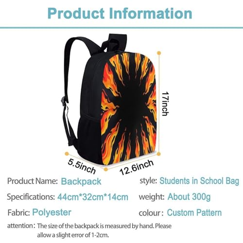 Specifications: Backpack length 12.6 inches, width 5.5 inches, height 17 inches, 1 main pocket, built-in 1 large patch pocket, 2 side pockets, ample pockets and storage space, keeping your items organized, easier to find, and easy to carry