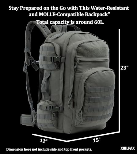 This sturdy multi-function tactical backpack bag is constructed of rugged 1000D polyester fabric for the use of in tough condition. This large military style backpack pack assists in keeping your tactical gear and out of doors essentials organized. Ideal for go back and forth, camping, climbing, bushcraft, backcountry adventure, and so forth.
