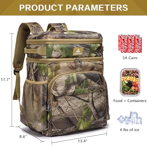 LARGE CAPACITY PICNIC BACKPACK: With a whopping capacity to hold 54 cans, the Laripwit picnic backpack cooler bag provides ample space for your entire food and beverages, making it perfect for work, lunch, picnics, camping trips, beach outings, go back and forth, and more. The measurement is 13.4 x 8.6 x 17.7 inches; 1.9 Pounds.