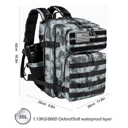1. PERFECT SIZE, the mid-sized backpack you’ve been searching for: This Military Tactical backpack size approx: 16.5inch x 9.8inch x 11.8inch, Capacity: 35L; Military backpack is made of 900 oxford nylon fabric, durable and water -repellent.