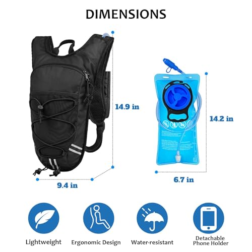 【Lightweight & Comfortable for Long Runs】 This 2L hydration backpack features a minimalist design with a main compartment for the water bladder, offering a lightweight fit that reduces strain all over running, cycling, mountaineering, and out of doors workouts