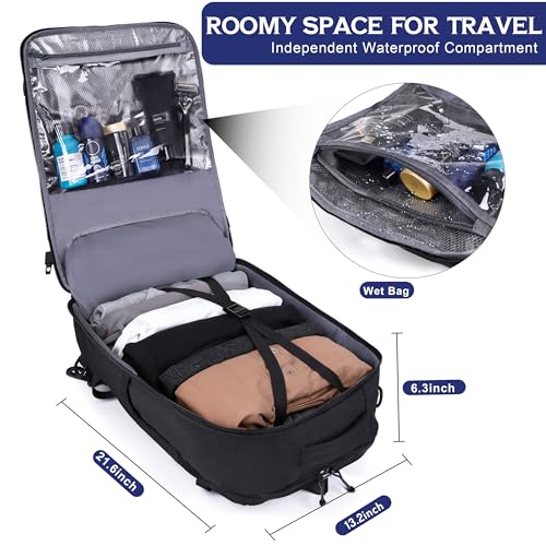 Large Capacity TSA Approved Backpack: Provides ample space to hold a 17-inch laptop, 4 sets of clothes, shoes, a water bottle, and an umbrella. Measures approximately 13.2″ L x 21.6″ H x 8.6″ W and weighs only 1.75 kg (3.75 lbs). Its dimensions are designed to meet most airline overhead bin size standards, making it a perfect carry-on bag for hassle-free Trip.