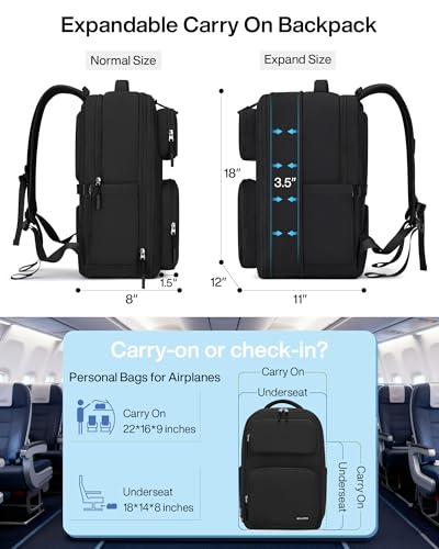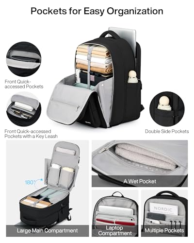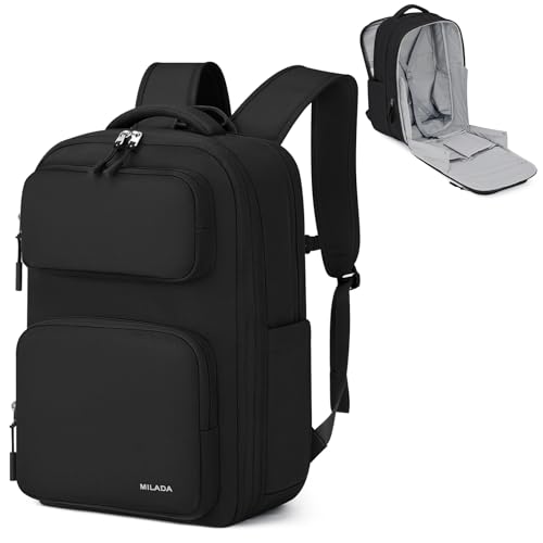 【Smart Expansion for Extended Trips】MILADA expandable backpack features a smooth expansion zipper, effortlessly growing from 28L to 39L. Perfect as a large backpack for Go back and forth on 3-5 day trips or business Go back and forth. Dimensions: 18″x12″x8″ (Standard) to 18″x12″x11″ (Expanded). Its compact size fits most carry on bags for airplanes as a personal item backpack. Ideal for extra souvenirs without a second bag