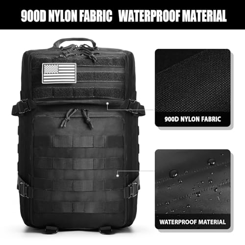 Rugged Durable Construction: The tactical backpack is made from strong water-resistant materials and features double stitching and heavy duty zippers, providing long-lasting performance and exceptional durability Our military tactical backpack is built to resist harsh conditions as hydration backpack or outdoor camping hiking backpack.