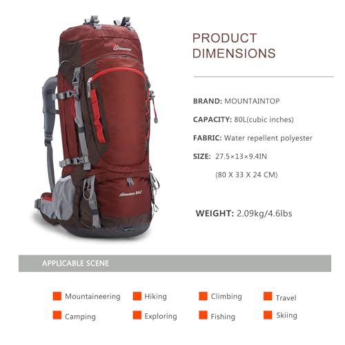 MULTIPLE USES: This 80l outside backpack is equipped with high-quality waterproof lining and a rain cover on the bottom of the backpack, which can bring you a comfortable experience, so it is rather suitable for short trips, outside hunting, mountain mountaineering, camping, Mountaineering.