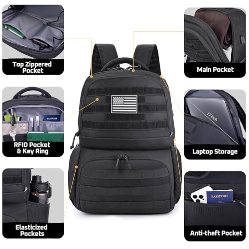 YKK Zippers and Durable Fabric with Molle Design allow you to use it for almost any situation from laptop backpack, college backpack, work backpack, go back and forth backpack, weekender backpack, insulated backpack or casual daypack. Perfect for work, college, picnic, bussiness travel, everyday carry, camping, hiking, go back and forth, flight, etc.