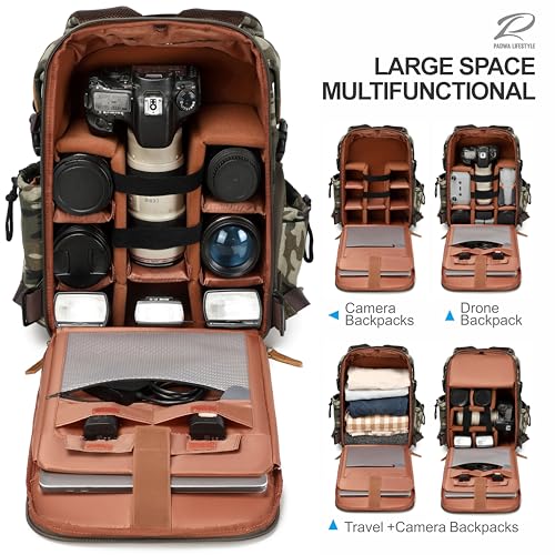 📷 PROFESSIONAL CAMERA BACKPACK : Our Crazy Horse Leather Style weather resistant Canvas camera backpack for Professional photographers, the camera backpack designed comes with 8 pcs removable thick padded dividers (with Velcro Function) to customize the interior space according to your individual needs, and can be utilized as a professional camera backpack, drone bag, binocular bag and leisure commute backpack.