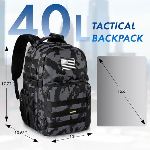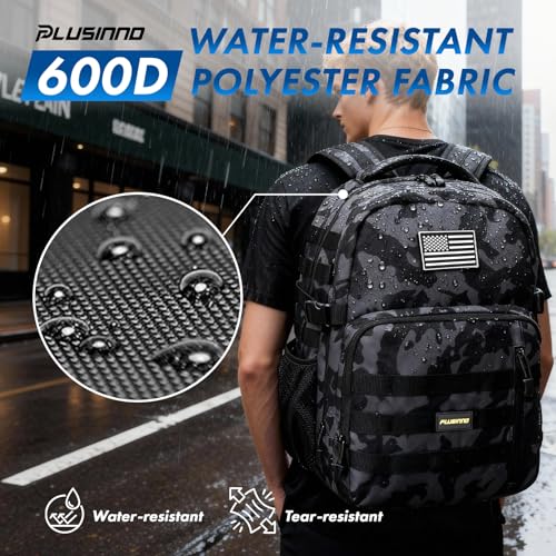 【PLUSINNO SELECT】The tactical backpack measures 17.72″ x 13″ x 10.63″ with a 40L capacity, easily holding your whole essentials. With spacious, multi-layer interior, the tactical bag organizes extensive outdoor gear and daily carry items. Crafted from durable, water-resistant 600D Oxford nylon, this military backpack is built to last. The tactical backpack features a Hook and Loop Fastener, allowing you to replace the national flag patch to others. Perfect versatile companion for every scenario.