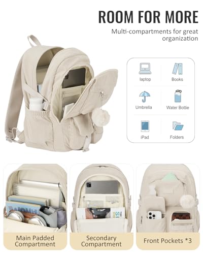 Big enough for the necessities, it is not only a backpack for women, also for teens, students, young girls, your kids, In addition, you could use this campus bookbag to organize your 15.6’’ laptop, iPad, cosmetics, books, accessories, clothes, phone and so on.