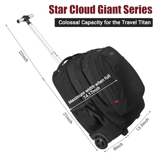 TOP TRAVEL PICKS: Discover the pinnacle of trip gear with the StarCloud Voyager X2 Convertible Wheeled Backpack, the ultimate present for individuals who traverse the globe with style and ease. Sized perfectly for carry-on at 21″x13.5″x8″ (including wheels) and featuring a spacious 45L capacity, this rolling backpack is the ideal choice for international business travelers, active college, and weekend explorers. Weighing in at a mere 5 lbs, it’s an essential carry on rolling backpack for professionals, daily commuters, and academics.