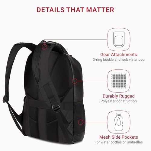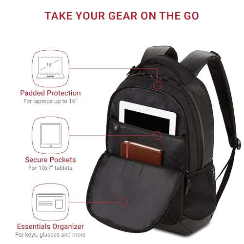 The SWISSGEAR Cecil Laptop Backpack is built for on a regular basis reliability, smart organization, and comfortable carry. This is an 18-inch backpack designed to fit laptops up to 16 inches, making it ideal for students, commuters, and travelers. It features a padded laptop sleeve, tablet pocket, a couple of organizer compartments, airflow back panel, ergonomic straps, and shuttle-friendly add-a-bag sleeve. Durable, lightweight, and functional for on a regular basis use.