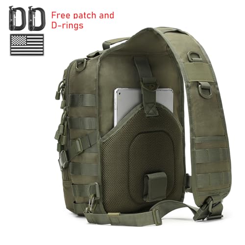 One item includes a tactical sling bag, an US flag patch and two black D-rings. Made of 600D nylon, our sling packs are meant to last for years even for the most rugged users and the backpack is designed to prevent your items from getting wet in damp environment. Three colors to make a choice from: black, coyote & od green.