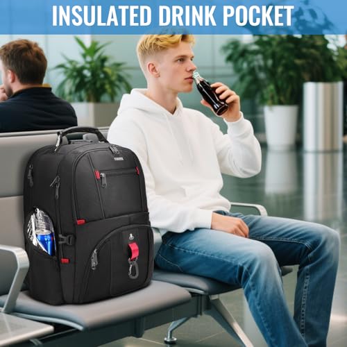 Bookbag for Men: This laptop backpack for men offers 3 large compartments and 10+ pockets, including a padded sleeve fit 17 inch laptop . The school backpack with laptop compartment main compartment offers ample space for clothes, go back and forth essentials, books, and so forth. The large bookbag with side mesh pockets is ideal for water bottles, umbrellas, and an insulated pocket to keep drinks hot or cold on the go. The large backpack for men top pocket has a soft-lined pocket to store sunglasses